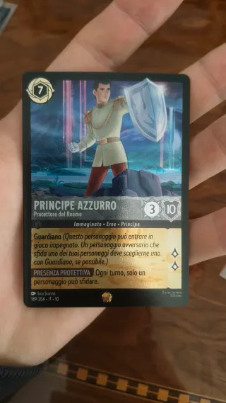 Carta Principe Azzurro dal set sussurri nel pozzo lingua italiana - Numero carta: 189/204 - Edizione: Foil - Immaginato: Eroe, Principe - Costo: 7 - Forza: 3 - Resistenza: 10 - Abilità: Guardiano, Presenza Protettiva