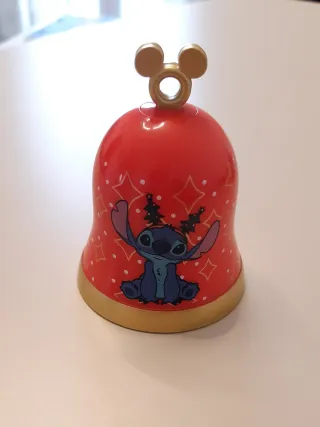 Campanellina a tema Disney con Stitch, perfetta per il Natale 2025. - Design rosso festivo. - Immagine di Stitch. - Dettagli dorati e decorazioni natalizie.