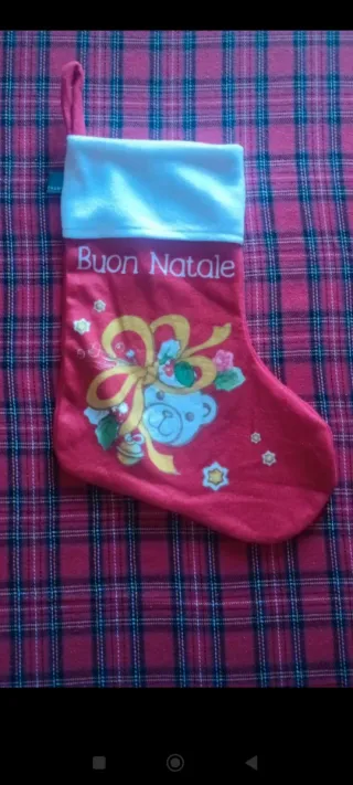 Set di 3 calze per la Befana, perfette per un regalo natalizio. - Colore rosso vivace. - Decorazione con orsetto e fiocco. - Scritta Buon Natale.