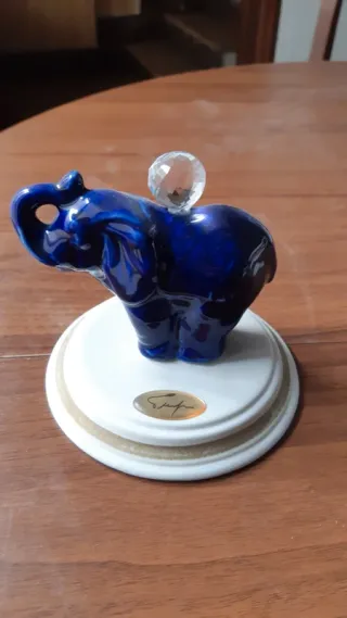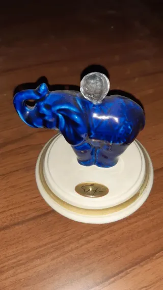 Grazioso elefante in vetro blu, impreziosito da un cristallo sulla schiena. Poggia su una base bianca con dettagli dorati. - Materiale: Vetro - Colore: Blu - Dettaglio: Cristallo - Base: Bianca con finiture dorate