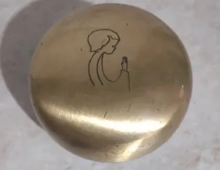 Piccola scatola vintage in ottone, con un disegno inciso. Non spedisco con InPost Locker Point. Visto l'età presenta delle imperfezioni vedete foto, ha bisogno anche di essere pulita. Misura cm 5. Credo sia in ottone. - No !!!! InPost Locker Point !!!!! - Materiale: ottone - Disegno inciso di una figura stilizzata