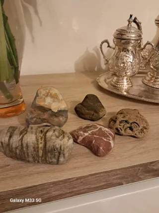 Set di sei sassi decorativi, perfetti per arricchire la tua casa. Peso complessivo kg 1,150 - Sassi di varie forme e colori. - Ideali per collezionisti o come elementi decorativi. - Ogni sasso è unico.