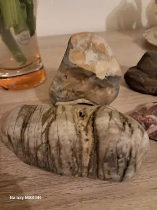 Bellissima collezione di minerali e rocce, perfetti per appassionati e collezionisti.Peso grammi 5.50 - Diverse forme e colori. - Include un fossile a forma di conchiglia. - Roccia calcarea porosa. - Pietre levigate dal fiume.