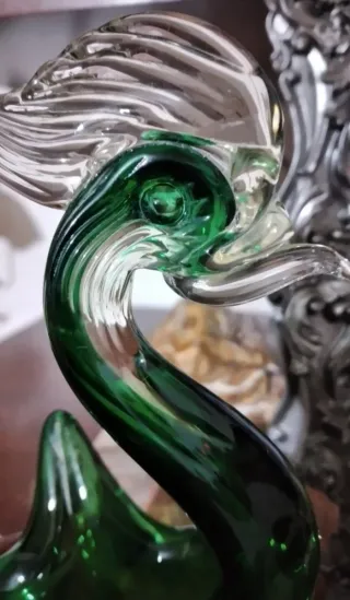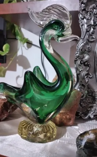Elegante cigno in vetro di Murano vintage, con una splendida tonalità di verde. Un pezzo unico che aggiunge un tocco di classe. No InPost Locker Point. Visto l'età presenta qualche imperfezione ha il becco rotto. Misura circa cm 16. - Non spedisco con InPost Locker Point. - Materiale: Vetro di Murano - Colore: Verde e trasparente - Design: Cigno stilizzato