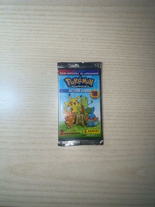 Busta di carte Pokémon Advanced Action Cards. - Carte lenticolari da collezione. - Contiene 108 carte. - 3 carte in ogni bustina. - Prodotto da Panini nel 2004