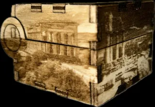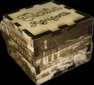 Piccola scatola in legno con incisioni decorative. Ideale per conservare piccoli oggetti o come portachiavi. - Dimensioni: 6x6x5 cm. - Materiale: Legno. - Incisione: Sicilia Agrigento.