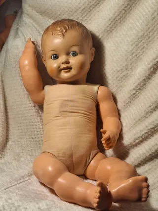 Bambolotto vintage İn ottime condizioni alto 50 cm. Testa in cartapesta Occhi fissi in vetro Corpo imbottito arti snodati in plastica. Tutto integro.