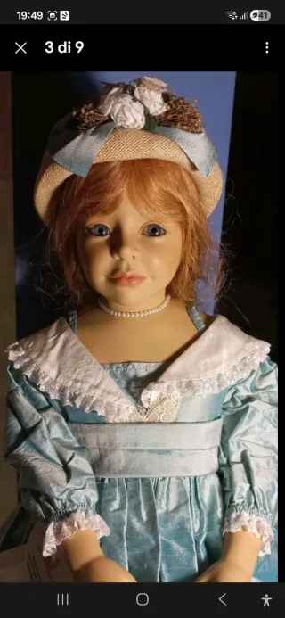 Bambola da collezione nuova in scatola Migliorati,produzione limitata h.53 cm Nuova con certificato un pezzo unico per veri intenditori. - Vestita con abiti dettagliati. - Include un piccolo orsacchiotto. - Cappello verde e giacca color senape.