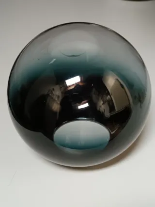 Elegante sfera in vetro con sfumatura di colore blu. - Materiale: Vetro, diametro 15cm base 7,5cm - Design moderno e decorativo.