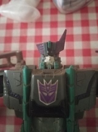 Action figure di Transformers Cybertron Megatron. - Dettagli in verde e arancione. - Parti viola e grigie.