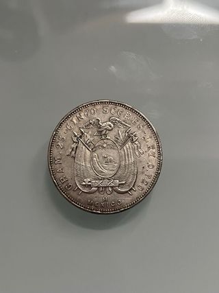 Moneta da 5 Sucres dell'Ecuador, coniata nel 1943. - Materiale: Argento.