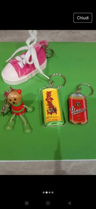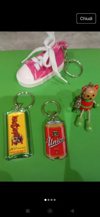 Set 4 portachiavi vintage: sneaker, lattina, orso
