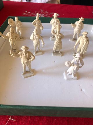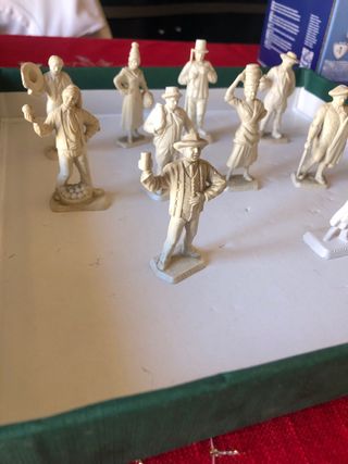 Set di soldatini Mokarex in stile classico. - Figure in stile vintage. - Perfetti per collezionisti. -presenti diversi nobili delle corti di Francia e Spagna del 1800 -ogni personaggio ha inciso il proprio nome sulla parte anteriore -marca mokarex depose -colore bianco opaco adatti per poter essere dipinti a mano -10 unità in ottime condizioni considerata l’età di produzione