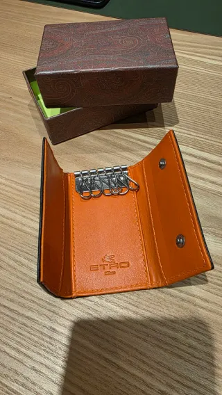 Elegante portachiavi Etro, perfetto per organizzare le tue chiavi con stile. Realizzato in pelle nera con una finitura che imita la pelle di coccodrillo. - Logo Etro in metallo sul davanti. - Design compatto e raffinato.