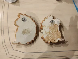 Nuovi, intagliati a mano in legno, acquistati in Italia. Dimensioni: altezza 15 cm, larghezza 6 cm. Mostrati senza impegno.