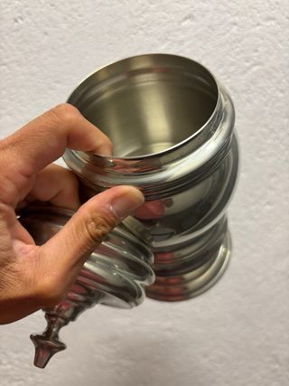 Bellissima zuccheriera in metallo argentato, perfetta per aggiungere un tocco di eleganza alla tua tavola. - Realizzata in metallo argentato di alta qualità. - Design classico ed elegante. - Dimensioni: (inserisci dimensioni) - Condizioni: Ottime