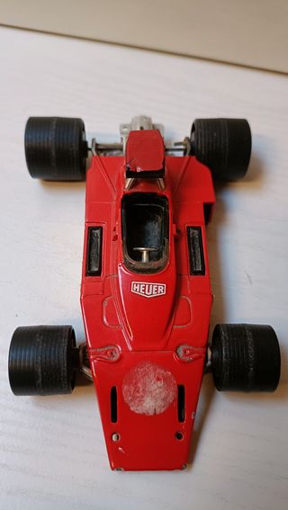 Garantisco per un imballaggio perfetto e sicuro e spedizione rapidissima. Modellino Ferrari B3 F1 in scala 1:25. Prodotto da Polistil, azienda milanese attiva dagli anni '60. Il modello è in metallo pressofuso e plastica. La scala è 1:25 e il codice prodotto è FX.7. Presenta lo sponsor Heuer sul muso. Made in Italy - Dettaglio logo Heuer sul cofano.