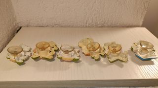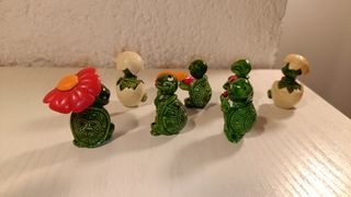 Una popolare serie di sorprese degli anni '90. La collezione completa è composta da dieci diverse tartarughine in plastica dipinte a mano. Questa è composta da 7 pezzi di cui 2 doppioni