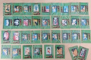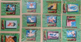 Carte da collezione Dragonball z serie verde, degli anni 2000 tenute alla perfezione, come nuove! 33 Pezzi + 2 doppioni. Nell'ultima foto potete trovare la lista della collezione completa da 100 pezzi (che potete trovare su altri siti a 100 euro)
