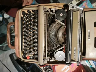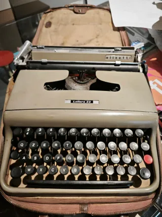 Iconica macchina da scrivere portatile Olivetti Lettera 22, un classico del design italiano. - Colore beige. - Custodia originale inclusa.