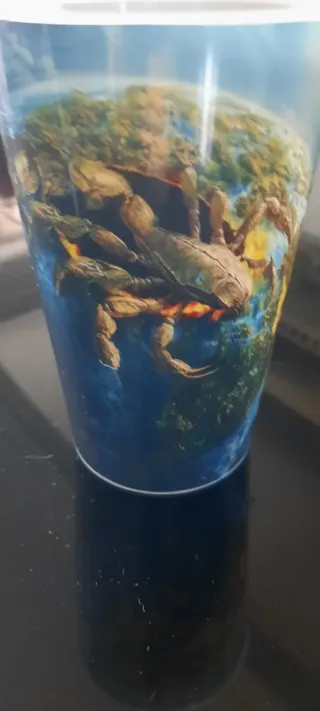 Bicchiere da birra con grafica degli Scorpions. - Design con donna e scorpioni. - Colore nero con dettagli rossi e dorati.