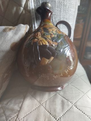Bellissima botticella per whisky di Royal Doulton, della collezione Kingsware, vuota - In ceramica, con dettagli dipinti a mano. - Raffigura una scena di allegria e convivialità. - Tappo in metallo argentato con catenella. - Perfetta per collezionisti o amanti del whisky, piccola sbeccatura alla base