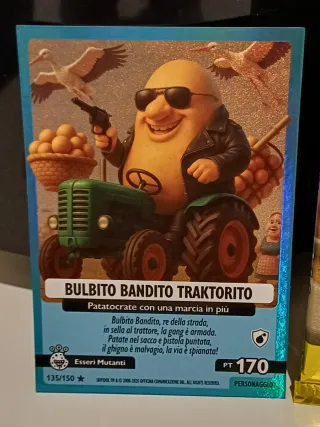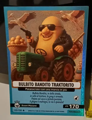 Carta Bulbito Bandito Traktorito della serie Skifidol. - Personaggio: Bulbito Bandito - Serie: Esseri Mutanti - Punti: 170 - Numero carta: 135/150