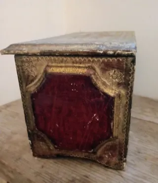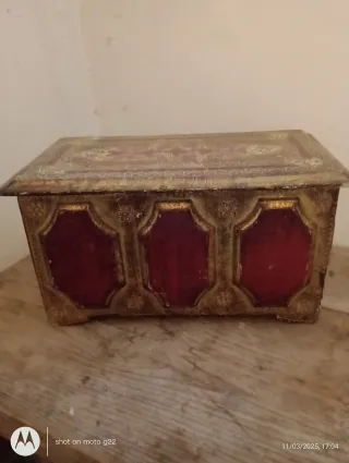Splendida scatola antica, un pezzo unico con decorazioni dorate e inserti rossi. - alta 15 lunghezza 28 larga 14 cm - Design fiorentino. - Dettagli decorativi dorati. - Pannelli interni in tessuto rosso.