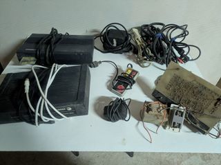 Lotteria di apparecchiature elettroniche antiche: decodificatori, alimentatori...