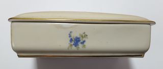 Elegante scatola in porcellana di Bavaria, risalente agli anni '60. Presenta una delicata decorazione floreale blu. Elegante scatoletta vintage in porcellana Bavaria, anni ’60, con raffinato decoro floreale. In ottime condizioni, senza scheggiature né difetti, perfetta come pezzo da collezione o come tocco di charme per la tua casa. Un piccolo gioiello di stile retrò! Misure: 13 x 9 x 4,5 Cm. - Materiale: Porcellana - Decorazione: Fiori blu - Epoca: Anni '60 - Provenienza: Bavaria