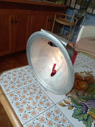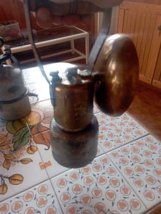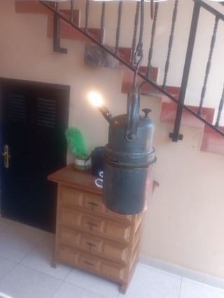 Lampada al carburo antica, degli anni '50. Un oggetto da collezione, perfettamente funzionante, modello un po' raro per la sua forma, non sembra la tipica lampada al carburo. Se raccolta a mano, è possibile lasciare un po' di carburo per prova. La spedizione tramite Wallapop funziona solo con le Canarie.