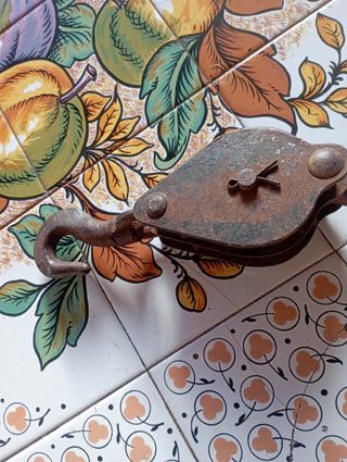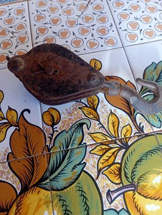 Vecchia puleggia doppia in ghisa. Design robusto e classico. Materiale: ghisa. Finitura: ossidato, con patina del tempo. Non pulita per preservare l'originalità, perfettamente funzionale e molto decorativa. Wallapop spedisce solo nelle Canarie, spese di spedizione per la penisola: 12 euro.