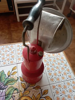 Vecchia lampada al carburo del marchio Arras. Un oggetto da collezione con un design classico. Fabbricata in metallo scuro. Presenta un manico superiore per il trasporto. È in perfette condizioni d'uso. Preferibilmente ritiro a mano nel sud di Tenerife. Spedizione tramite Wallapop solo nelle Canarie. Per la penisola non funziona. Altre foto e dettagli su WhatsApp. Prezzo non trattabile. Astenersi truffatori.