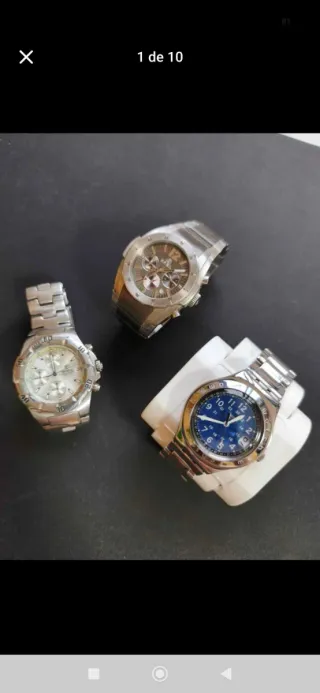 Lote di 3 orologi originali: • Breil Cronografo argento • Breil Cronografo nero/rosso • Swatch Irony blu - nuovo, con scatola Conservati per anni senza utilizzo. I Breil necessitano di batteria. Lo Swatch mai utilizzato. Consegna ad Arona - Tenerife Sud. Spedizione tramite Posta certificata.