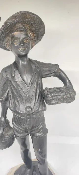 Statuetta in bronzo raffigurante uno scugnizzo pescatore. L'opera è montata su una base in marmo. - Materiale: Bronzo - Base: Marmo - Soggetto: Scugnizzo pescatore