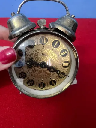 Sveglia meccanica vintage marca PRIM, prodotta in Cecoslovacchia. Presenta un quadrante con numeri romani e decorazioni floreali dorate. Si deve riparare,non funzionante - Design classico con campane. - Movimento a carica manuale. - Indicazione Made in Czechoslovakia sul quadrante.