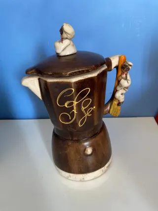 Caffettiera in ceramica decorata con Pulcinella. Solamente come elemento di arredo - Design unico e colorato. - Dettagli artigianali. - Perfetta come pezzo d'arredo.
