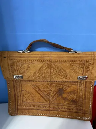 Borsa in pelle lavorata a mano con dettagli incisi. - Materiale: vera pelle - Chiusura a scatto - Manico superiore - Finitura cucita a vista