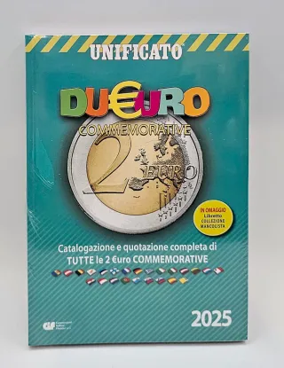 Catalogo Unificato per le monete commemorative da 2 Euro, edizione 2025. - Catalogazione e quotazione completa di tutte le 2 Euro commemorative. - Include libretto Collezione Mancoista in omaggio. - Copertina con bandiere degli stati europei.