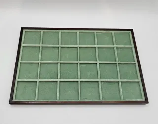 Vassoio Espositore per monete pregiate antiche e moderne con rivestimento in velluto italiano verde acqua.Misure 1 piazza 310x200 mm - Bordo in legno con interno in velluto di prima qualità, colore verde acqua sotto foderato con tessuto antiscivolo