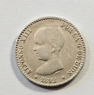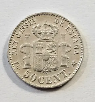 Moneta da 50 centesimi di Spagna del 1892, con l'effigie di Alfonso XIII. - Anno: 1892 - Valore: 50 Centesimi - Paese: Spagna - Sovrano: Alfonso XIII