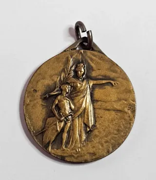 Medaglia in bronzo commemorativa Io Trivmphe del Ministero della Guerra. Peso gr 9 -diametro mm25 da collezione originale - Raffigurazione di un trionfo con figure umane. - Dettagli architettonici sullo sfondo. - Anello per appenderla.