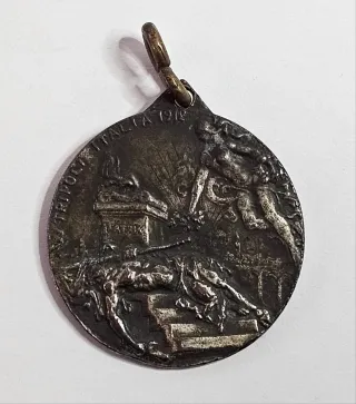 Medaglia commemorativa di Venezia, relativa alla guerra di Tripoli e all'Italia nel 1918. Raffigura una scena allegorica con figure e iscrizioni. - Dettagli storici: Tripoli, Italia, 1918 - Provenienza: Venezia - Materiale: Metallo (presumibilmente bronzo o argento, da verificare) - Soggetto: Scena allegorica con figure e iscrizioni