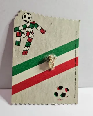 Spilla commemorativa dei Mondiali di Calcio Italia '90. - Design ispirato al calcio e ai colori italiani. - Perfetta per collezionisti e appassionati di calcio. - Prodotto conforme alla legge italiana 18 Febbraio 1983 N.46.