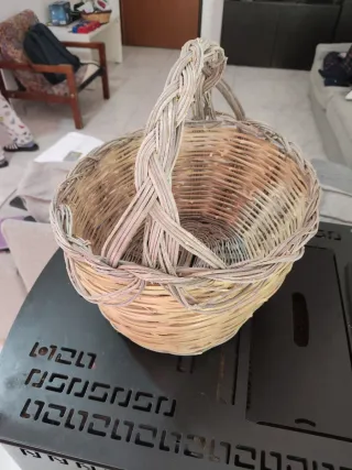 Bellissimo cesto artigianale sardo, realizzato con cura con materiali naturali. - Realizzato in canna e olivastro. - Design rustico e autentico.