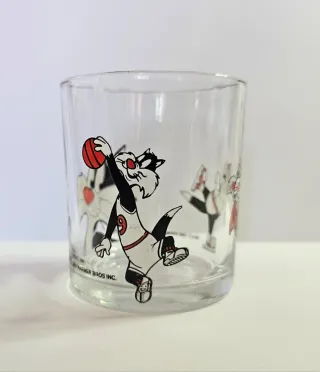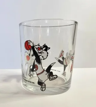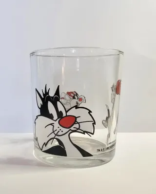 Bicchiere da collezione Nutella del 1991 con il personaggio Gatto Silvestro. - Personaggio: Gatto Silvestro (Sylvester the Cat). - Licenza: Warner Bros. - Anno: 1991.
