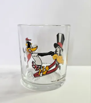 Bicchiere Nutella vuoto con personaggio Duffy Duck dei Looney Tunes. L'anno di produzione è il 1988. - Personaggio: Duffy Duck - Serie: Looney Tunes - Anno: 1988