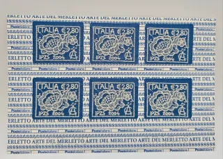 Sestina di francobolli Arte del Merletto del 2004. - Valore nominale: €2,80. - Design raffigurante un merletto floreale. - Edizione IPZS 2004.
