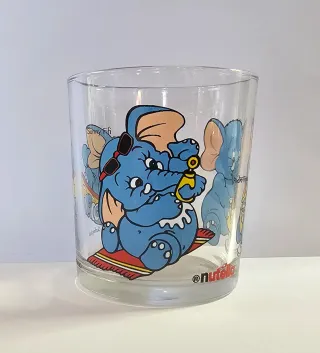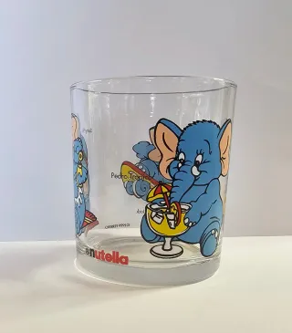 Bicchiere da collezione Nutella con il simpatico elefantino. Un pezzo unico del 1999. - Design con elefantino colorato. - Logo Nutella presente.