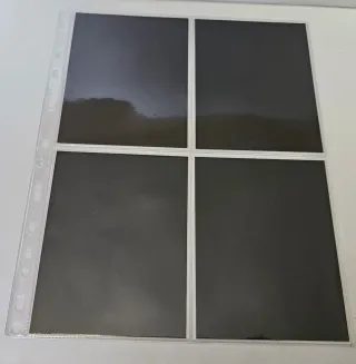 Fogli trasparenti per conservare le tue santini.Confezione da 10 fogli - Ogni foglio contiene 4 tasche. - Materiale plastico resistente.